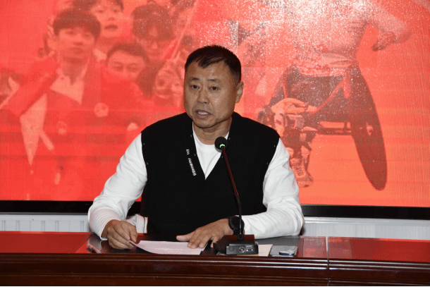 张磊副院长鼓励同学们,“内蒙古自治区第十三届大学生运会在即,让我们带着这份信念出征!你踏过的每寸跑道,你投出的每个球,你做的每一个动作都是铿锵有力的,因为你代表你的母校,为荣誉而战!因为你身披铠甲,有你的老师、教练为你保驾护航!”
